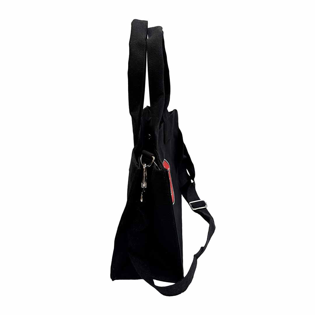 Style: Top Zipper. With 40 cm self handle & removable 1.5 inch dyed shoulder strap. Sticker & Screen Printing (Both Sides)